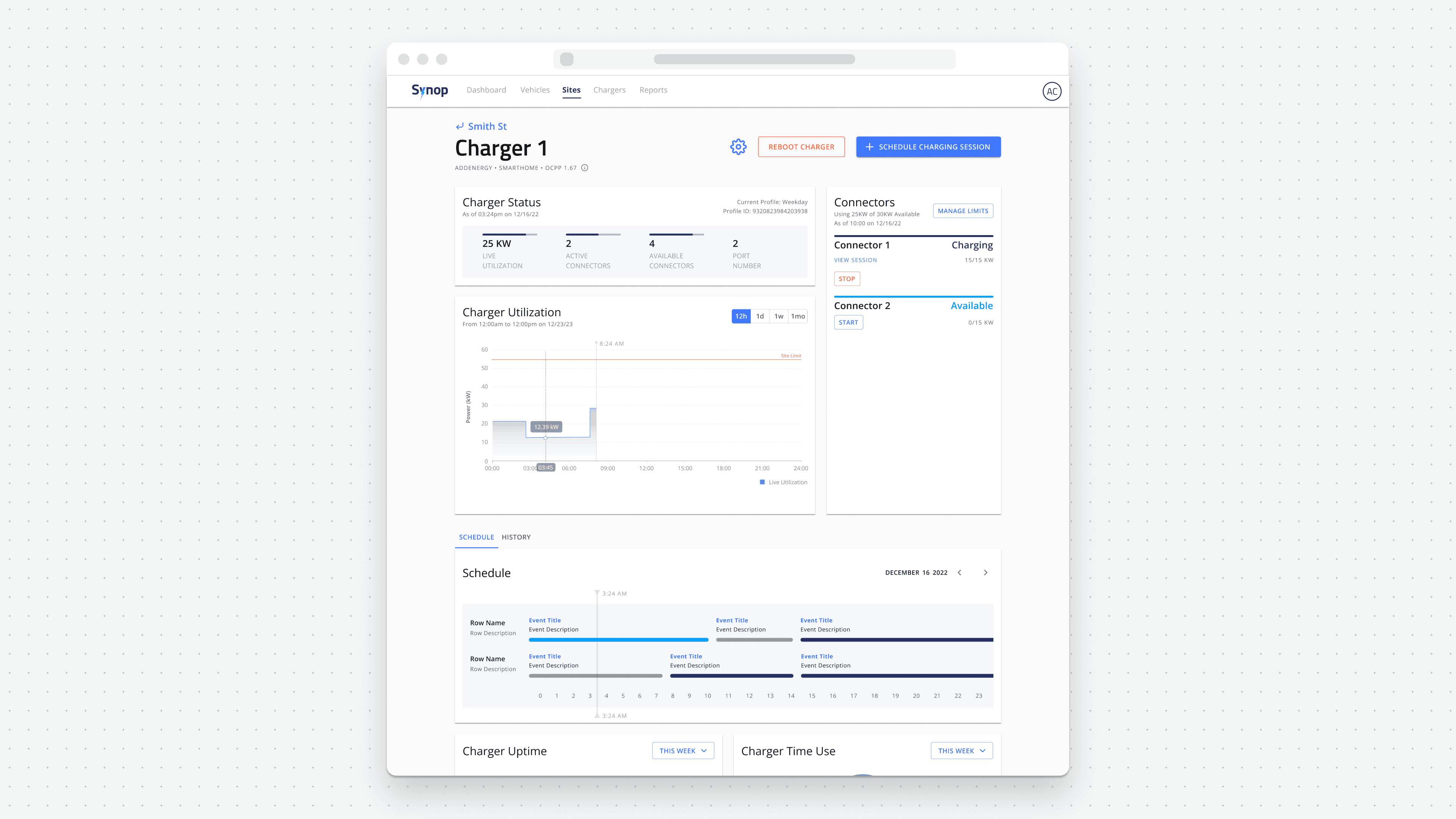 The platform redesign and brand evolution contributed to a 300% increase in Synop's customer base, supporting fleet operators managing over 400MWh of energy across 650+ commercial depots with 99.99% average uptime. The design work enabled customers like Minnesota Coaches to solve previously intractable operational challenges (maintaining optimal battery temperature and state of charge in sub-zero conditions through smart scheduling algorithms), while supporting grid-scale innovation like 115MWh of discharged V2G events that transformed fleet vehicles into distributed energy resources. Beyond the core platform, I evolved Synop's corporate brand presence through enhanced marketing assets, presentation templates, conference materials, and sales collateral that positioned the company as the enterprise-grade solution for commercial EV fleet operations. The component library and visualization patterns I established created a scalable design foundation that accommodated integrations with over 100 unique charging station models while maintaining a consistent user experience, ultimately enabling Synop to serve customers ranging from school bus operators to Fortune 500 logistics companies navigating the complexity of fleet electrification at scale.